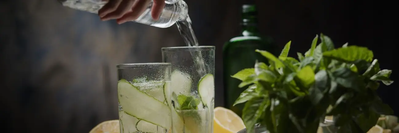 Gin Tonic ist ein absoluter Klassiker unter den Longdrinks. Sein Geschmack ist bitter-erfrischend, variiert jedoch leicht, je nachdem, welcher Gin für die Zubereitung eingesetzt wird. Das gilt selbstverständlich auch, wenn Sie auf alkoholfreien Gin setzen. Die Zutatenliste für (alkoholfreien) Gin Tonic ist kurz und die Zubereitung denkbar einfach. Gin Tonic wird in der Regel mit einer Zitrone oder Gurke garniert: Bei Gin mit Zitronennoten werden diese mit einer Zitronenspalte im Drink hervorgehoben; bei Gin, der neben Botanicals auch mit Gurke angereichert ist, ist ein Stück Gurke eine schöne Ergänzung.